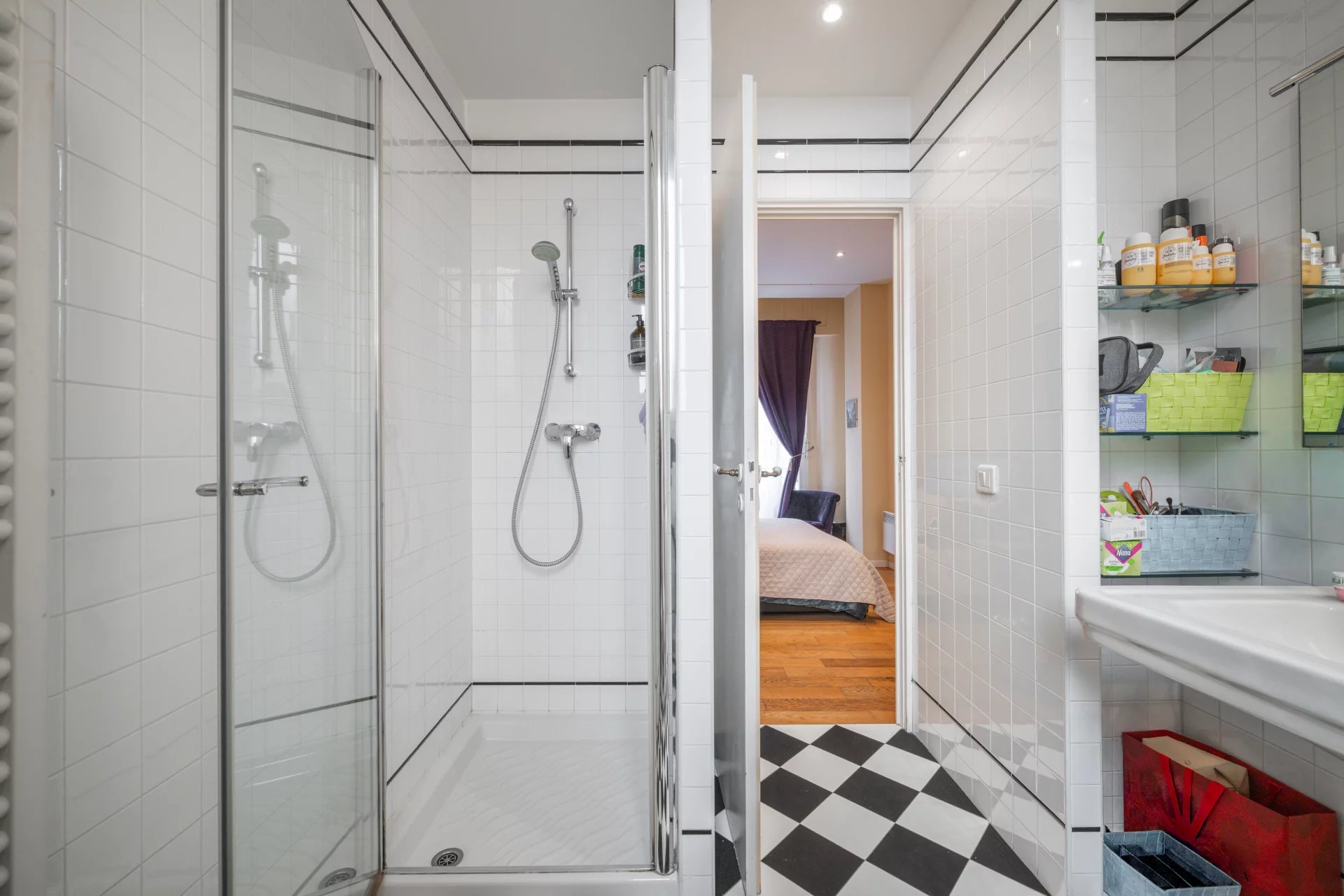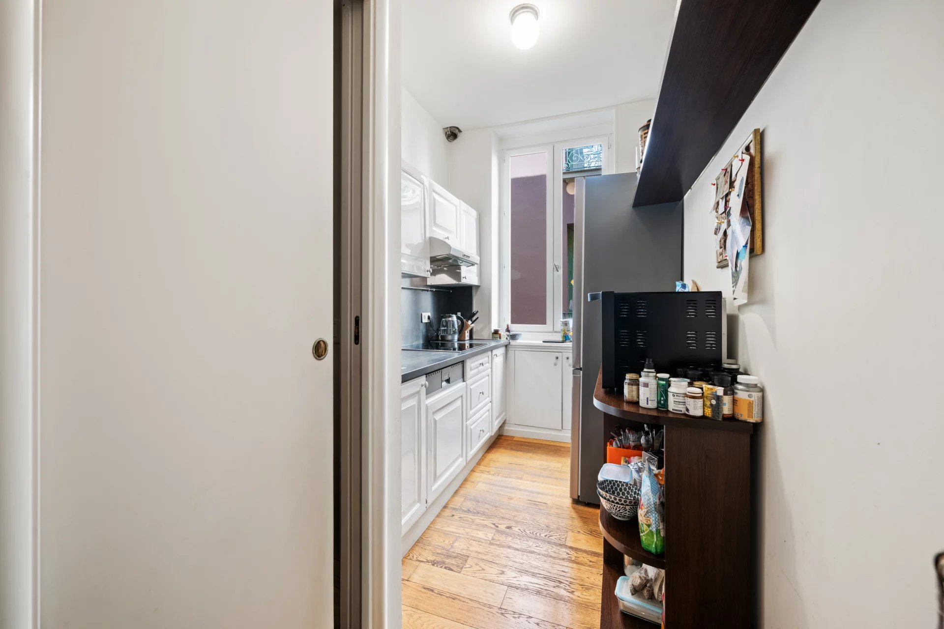 With a surface area of approximately 76 sqm, the apartment is in very good condition. Originally laid out as a four-room apartment, it has been intelligently redesigned into a spacious three-room layout, favoring generous volumes and comfort.